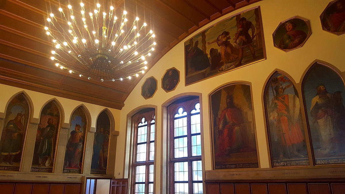 2. Im ersten Stock des Römers findet sich der Kaisersaal, in dem alle 52 Kaiser in Ölgemälden verewigt sind, die das Reich von 758 bis 1806 regiert haben.
