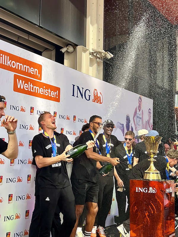 The official main sponsor of the DBB, ING Deutschland, played a major role in organizing this reception. The event took place in front of the headquarters at Theodor-Heuss-Allee 2, where fans gathered.