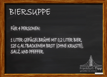 For 4 people: 1 litre of texture stock with 0.2 litres of beer, 125g of stale bread (without crust), salt and pepper