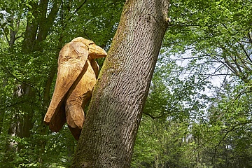 Der komische Vogel ist fast zwei Meter groß und wiegt stattliche 300 Kilogramm. Im Vergleich zu seinem Vorgänger ist er damit sogar ein wenig kräftiger geraten, seinem Namen macht er jedenfalls alle Ehre. Mit dem Comeback des Monsterspechts ist die Komische Kunst im GrünGürtel auch endlich wieder komplett. 14 Exemplare umfasst die Reihe von Kunstwerken, erdacht von den Künstlern der Neuen Frankfurter Schule. Allen voran das GrünGürtel-Tier von Robert Gernhardt, aber auch der Barfüßer, das Ich-Denkmal, der Struwwelpeter-Baum und die anderen komischen Kunstwerke sind bekannt und beliebt, eben auch der Monsterspecht.