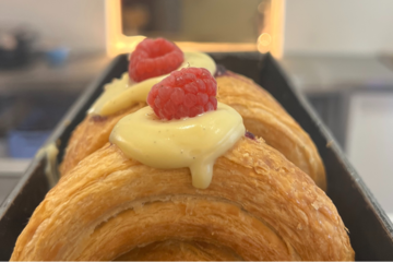 New York Rolls bestehen aus kreisförmigem Croissant-Teig, der mit verschiedenen Cremes gefüllt und mit einer Ganache belegt ist.