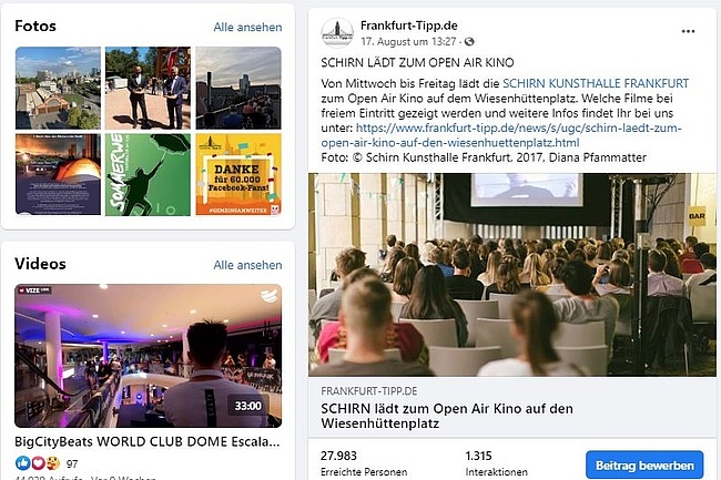 Das SEO der Website, das ausgezeichnete Google Ranking und die dazugehörigen Social-Media-Kanäle auf Facebook, Instagram, YouTube und TikTok machen Frankfurt-Tipp zu einem einzigartig reichweitenstarken Kommunikationskanal.