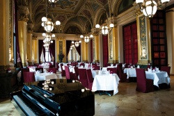 Wer das erste Mal das Restaurant in der Alten Oper betritt, dem mag es schwerfallen, die Augen von der majestätisch anmutenden Deckenmalerei und dem feinen Interieur abzuwenden. Doch hier wird nicht nur etwas fürs Auge geboten. Auch echte Gaumenfreuden werden hier den Gästen serviert, Zum Businesslunch, zum entspannten Mittagessen oder zum Dinner vor einem Konzertbesuch. Rund 100 Personen können hier bewirtet werden, die schöne Sommerterrasse kann noch einmal so vielen Gästen Platz bieten.