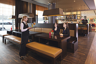 Im Mövenpick Restaurant bieten wir Euch hessische, internationale und natürlich auch Schweizer Spezialitäten. Selbstverständlich könnt Ihr bei uns auch saisonal wechselnde Highlights genießen und in unserer offenen Showküche einen Blick auf die Zubereitung der Speisen werfen. Eine Besonderheit ist außerdem das Twingle-Menü. Dieses 3-Gang Menü wird monatlich neu von den Auszubildenden kreiert, schlemmen könnt Ihr dieses zu Zweit bei einem romantischen Dinner oder mit Freunden inklusive einer Flasche Mövenpick Wein für einen Festpreis von EUR 62,00.