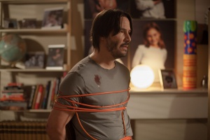 Das funktioniert in einigen Szenen auch recht gut. Gerade dann, wenn sich die knisternde Ménage-à-trois in eine alptraumhafte Hausbesetzung verwandelt, wird der Unterhaltungswert parallel zu den Schreckensszenarien in den Köpfen der männlichen Zuschauer deutlich in die Höhe katapultiert. Hier offenbart der Thriller ein Potential, das an vielen Stellen leider wieder verloren geht. Grund hierfür ist das viel zu überzogene Spiel der Darsteller. Die Hysterie, die die beiden durchgedrehten Sirenen an den Tag legen, wirkt irgendwann einfach nur noch nervig und nicht mehr bedrohlich. Während sie in den Szenen, in denen sie Evan um den Finger wickeln, noch absolut überzeugen können, liefern die beiden Darstellerinnen hier eher unfreiwillig komische Leistungen ab. Und auch Keanu Reeves bemüht sich erfolglos, der Verzweiflung, Wut und Angst seiner Figur die notwendige Glaubwürdigkeit zu verpassen.