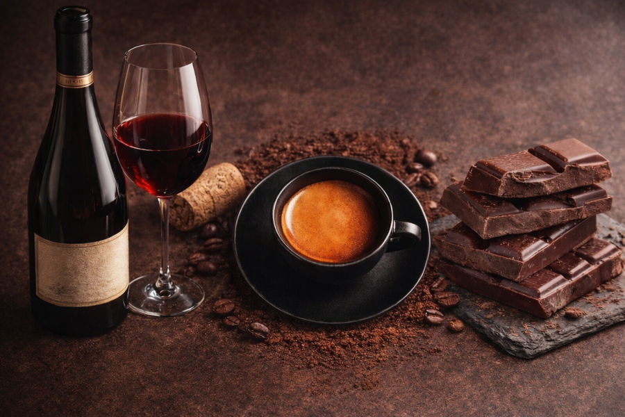 Endecke bei diesem exklusiven Tasting Wein, Kaffee und Schokolade im perfekten Zusammenspiel - überraschend, intensiv & voller Aromen.