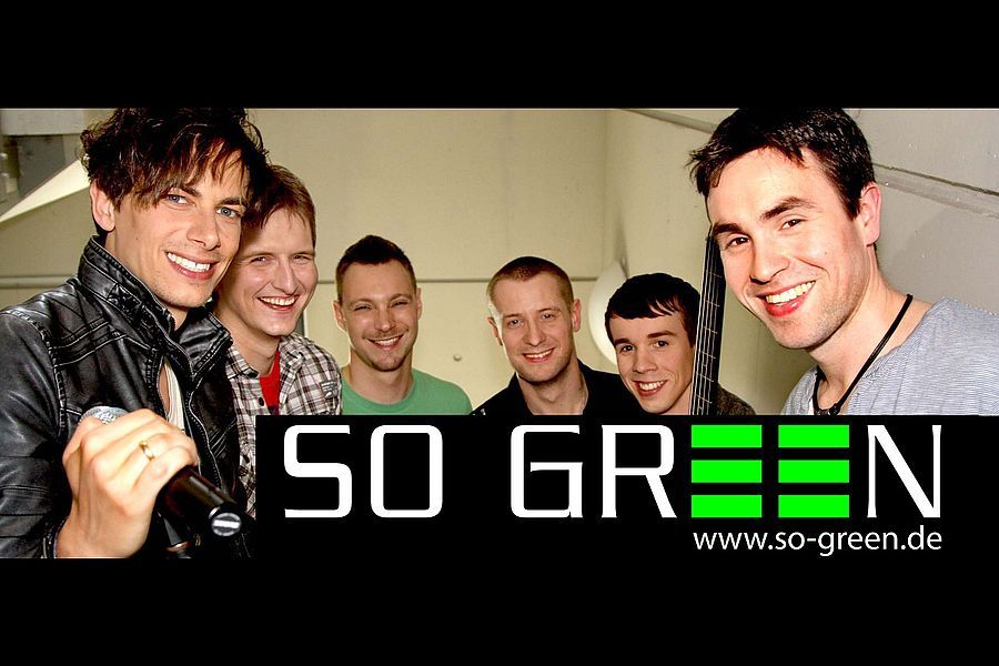 Mit ihrem Schwiegermutter-Charme touren Jan, Oliver, Juliano, Matze, Tobi und Momo nicht nur live durch die Nation. SO GREEN ist auch die offizielle „FFH Band“. Deshalb kann man die 6 Jungs auch regelmäßig auf Hessens größtem Radiosender, Hit Radio FFH, hören. Auch Größen der Entertainment-Branche haben bereits ein Auge auf SO GREEN geworfen. So haben sich bereits Mario Barth und auch Bülent Ceylan den rockigen Sound der Jungs für ihre Stadiontourneen gesichert. Seit 2010 sind SO GREEN ein fester Bestandteil des Schlossgrabenfestes in Darmstadt. Außerdem sind sie seit Jahren fester Bestandteil des Rahmenprogramms des WM-Public Viewings in der Commerzbank-Arena. Fast schon legendär sind die SO GREEN „Disco-Medleys“, bei denen die Band Disco und Dance-Hits aller Jahrgänge spektakulär kombiniert. Gepaart mit verblüffenden Eigeninterpretationen großer Hits steht die Party-Ampel beim Publikum deshalb permanent auf SO GREEN. Rock on.